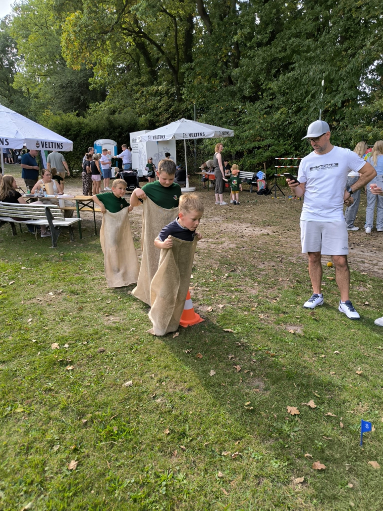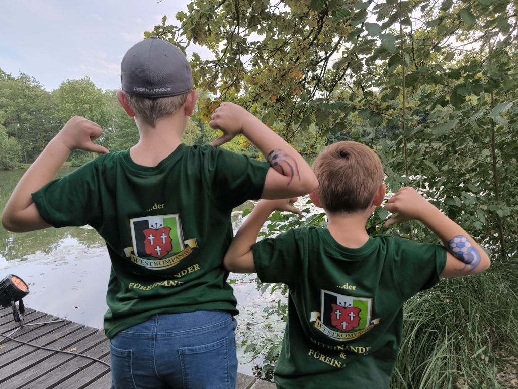 Der Tag begann um 15 Uhr mit Kaffee und Kuchen sowie der Kinderolympiade. In diesem Jahr erhielten alle teilnehmenden Kinder ein originales Westkompanie-T-Shirt. Die Jungschützen hatten darüber hinaus einige Stationen mit verschiedenen Spielen vorbereitet, an denen die teilnehmenden Kinder sowohl ihre Geschicklichkeit als auch sportliches Können beweisen konnten. Neben den Klassikern wie Eierlaufen, Dosenwerfen und Sackhüpfen wurde auch das Spiel „Leitergolf“ und ein kleines Wettschießen mit Schaumstoffpfeilen angeboten. Um die 30 begeisterte Kinder probierten sich mit viel Spaß und Freude an den aufgebauten Stationen aus. Freudigen Anklang fanden ebenfalls das Kinderschminken und Hüpfburg.